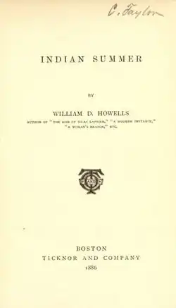 - ^ "The Project Gutenberg eBook of Indian Summer, by William D. Howells". www.gutenberg.org. Archived from the original on October 20, 2004.