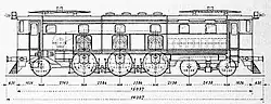 The EA/1 had three driving axles in the middle, a two-axle pilot bogie on one end, and a single trailing axle on the other end, which was joined in a Zara bogie with the nearest pair of driving wheels.[7]