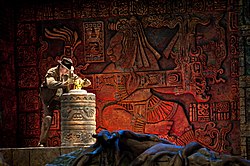 Indiana Jones is featured at several Walt Disney theme park attractions. The Indiana Jones Adventure attractions at Disneyland and Tokyo DisneySea ("Temple of the Forbidden Eye" and "Temple of the Crystal Skull," respectively) place Indy at the forefront of two similar archaeological discoveries. These two temples each contain a wrathful deity who threatens the guests who ride through World War II troop transports. The attractions, some of the most expensive of their kind at the time,[22] opened in 1995[23] and 2001,[24] respectively, with sole design credit attributed to Walt Disney Imagineering. Ford was approached to reprise his role as Indiana Jones, but ultimately negotiations to secure Ford's participation broke down in December 1994, for unknown reasons.[25][26] Instead, Dave Temple provided the voice of Jones.[27] Ford's physical likeness, however, has nonetheless been used in subsequent Audio-animatronic figures for the attractions.[28][29]