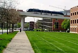 The Indiana University Health People Mover, formerly the Clarian Health People Mover, was a 1.4-mile (2.3 km) long, 4 ft (1,219 mm) narrow gauge[3] people mover in the city of Indianapolis in the United States. The system opened on June 28, 2003,[4] to connect Methodist Hospital of Indianapolis, Indiana University Hospital, and James Whitcomb Riley Hospital for Children, jointly operated as a single hospital by Indiana University Health.[5]