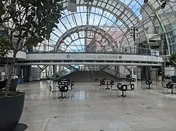 The Indianapolis Artsgarden is a glassed dome spanning the intersection of Washington and Illinois streets in downtown Indianapolis, Indiana. It serves not only as a pedestrian connector between Circle Centre Mall and nearby office buildings and hotels but also as a venue for the display and performance of artistic and musical works (more than 300 performances take place in the Artsgarden each year). In addition, the Artsgarden houses the Cultural Concierge, which provides local arts and cultural information, maps, and visitor guides.[2] The structure, including the walkways connecting it to the adjacent buildings, is owned and operated by the Arts Council of Indianapolis.
