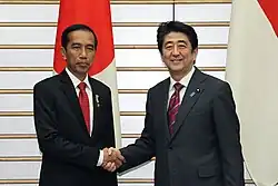 On 20 October 2020 during the COVID-19 pandemic, then-Japanese Prime Minister Yoshihide Suga visited Indonesia,[21] and pledged low-interest loans of ¥50 billion ($473 million) to Indonesia in talks with the Southeast Asian nation's President Joko Widodo to help it cope with the economic fallout from the coronavirus pandemic.[22]