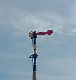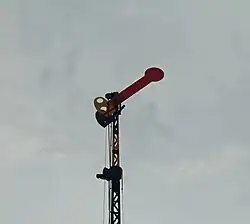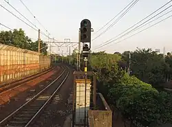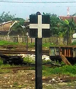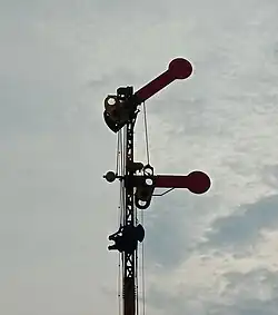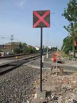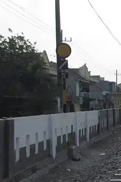 The Tebeng signaling device was the first railway signaling equipment used on Staatsspoorwegen lines since it first operated in 1878. The Krian signaling device (Dutch: Krianinrichting) was a development of the Tebeng signal, which used a tall tower equipped with locking equipment. The name of this signaling equipment is attributed to Krian Station, a railway station in Sidoarjo Regency, which was also the first station to use the signaling.[5] The last railway line to use the Krian signal was the Kalisat–Panarukan railway line, which was closed in 2004.[6] It is recorded that the Krian signal has been preserved at Krian Station, Tamanan Station,[7][6] Ambarawa Railway Museum,[8][9] and Garut Station.[10]
