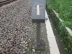 | The Semboyan 9J is a permanent signal in the form of a number on a square board which indicates that the train will enter the designated track number. | |