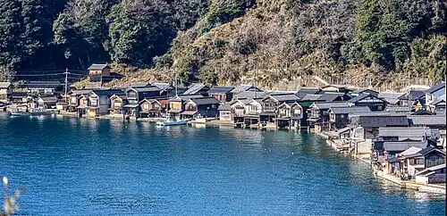 Ine has a mixed economy of commercial and tourism. The town is famous for wooden fishing houses called "Funaya", selected as a National Preservation District for traditional buildings.
