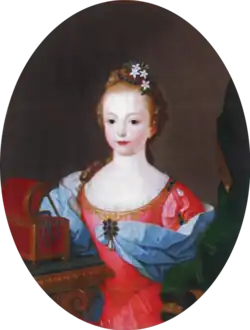 17. ^ Genealogie ascendante jusqu'au quatrieme degre inclusivement de tous les Rois et Princes de maisons souveraines de l'Europe actuellement vivans [Genealogy up to the fourth degree inclusive of all the Kings and Princes of sovereign houses of Europe currently living] (in French). Bourdeaux: Frederic Guillaume Birnstiel. 1768. p. 14.