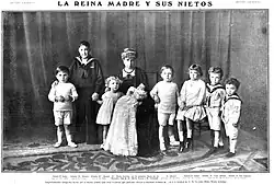Alfonso's mother was María de las Mercedes, Princess of Asturias, but she died in childbirth in 1904. Alfonso XIII, King of Spain, was unmarried at the time so as the Princess of the Asturias's eldest son, the young infante became heir presumptive to the Spanish crown, though, unlike his mother, he never held the title of Prince of Asturias.[2] He was heir presumptive until the birth of his cousin, Alfonso, to Alfonso XIII and Queen Victoria Eugenie in 1907.