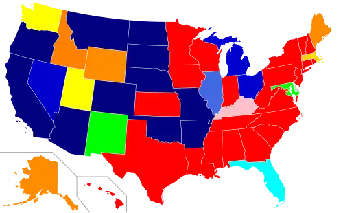 In many U.S. states, ballot measures may originate by several different processes:[4] Overall, 26 US states have initiative and/or veto referendum processes at the statewide level,[5] and all states have at least one form of legislatively referred processes: 49 states have at least a legislatively referred process to amend their constitutions, and one state, Delaware, has a possibility of legislatively referred ballot measures to pass new statutes only. In all of these states except Delaware, to modify the state constitution, at least one form of ballot measure is mandatory, under sometimes greatly different processes from state to state, either for directly voting on a proposed modification, or voting on a ballot measure for choosing to call or not for the election of a state convention charged of modifying the state constitution. Washington, D.C., also has initiative and veto referendum processes. Additionally, multiple forms of direct democracy also exists at the local level, including in some states that otherwise do not have these forms of direct democracy at the state level, the availability of direct democracy measures at the local level varying by jurisdiction depending on state and local laws.[6]