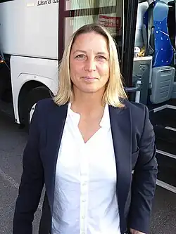Inka Grings (born 31 October 1978) is a German former international footballer who played as a striker. She played sixteen years for FCR 2001 Duisburg before joining FC Zürich Frauen. She also played for the Germany national team. Grings is the second all-time leading goalscorer in Germany's top division, the Frauen-Bundesliga, with 195 goals and claimed the league's top-scorer award for a record six seasons.[4][5] Playing for Germany, she was the top-scorer at two UEFA European Championships. Grings was named Women's Footballer of the Year (Germany) in 1999, 2009 and 2010.