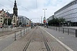 - ^ This length only includes the sections Roßplatz–Grimmaischer Steinweg as a single lane (183 metres or 600 feet) and Grimmaischer Steinweg–Georgiring with two parallel lanes (235 metres).
