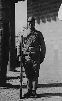 The army was divided into divisions of about 1,500, with one division being composed of three regiments of 500 men each. One regiment included four cavalry squadrons and one machine gun company, the latter having a strength of 120 men. However, the standard structure mostly existed on paper and it was unlikely that it was used in reality. A military training school was also established in 1936 with an intake of 500 cadets. However, the cadets became disillusioned and about 200 of them deserted.[4]