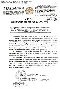1965 Ukase granting amnesty to Operation North deportees, including the Inochentists.