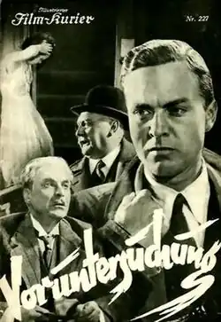 Inquest (German: Voruntersuchung) is a 1931 German crime film directed by Robert Siodmak and starring Albert Bassermann, Gustav Fröhlich and Hans Brausewetter. Along with another film that Siodmak made the same year Storms of Passion, it anticipates the later development of film noir.[1] It was made by German's largest studio Universum Film, with sets designed by art director Erich Kettelhut. Paul Martin, who soon after emerged as a leading director, was assistant director to Siodmak on the film. It was based on a 1927 play of the same title by Max Alsberg and Ernst Hesse. A separate French-language version About an Inquest was also produced.