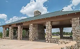 Inspiration Point Shelter House is an open-air pavilion located at Marion Sansom Park in Fort Worth, Texas. Built in 1927, the pavilion stands on a limestone bluff facing south-southwest overlooking Lake Worth dam, an old fish hatchery and the Naval Air Station Joint Reserve Base. The structure was designed in a style sometimes referred to as National Park Service Rustic or Parkitecture. It was built primarily of limestone. On December 22, 1973, a fire destroyed the original roof. The pavilion was restored in 2011. It was added to the National Register of Historic Places on March 31, 2014.