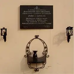 Plaque at 7 Rydygier Street commemorating the murdered inhabitants of the pre-war unemployed barracks estate