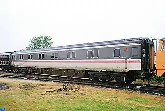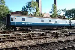 The first sleeping car train on the Great Western Railway was introduced at the end of 1877 from London Paddington to Plymouth. This had 7 ft (2,134 mm) broad gauge carriages with two dormitories, one with seven gentlemen's berths and the other with four ladies' berths. These were later replaced in 1881 by new carriages with six individual compartments.[1] An additional service was soon added from London to Penzance which eventually became known as the Night Riviera. Under BR sleeping cars were limited to just the Penzance service[2] After nationalisation there were two major investments in the sleeper fleet. The first occurred between 1957 and 1964 when 380 Mark 1 sleeping car carriages were built to replace the fleets inherited from the GWR, LMS and LNER. The Southern Railway didn't operate sleeper trains but did provide access to Compagnie International des Wagon Lits (CIWL) for their Night Ferry service from London to Paris via the Dover to Dunkerque train ferry. BR introduced the Inter-City brand for long haul passenger services in 1966.[3] This in turn put all sleepers under the Inter-city banner.