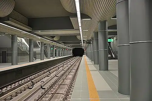 Inter Expo Center – Tsarigradsko shose Metro Station (Bulgarian: Метростанция "Интер Експо Център - Цариградско шосе") is a station on the Sofia Metro in Bulgaria. It opened on 25 April 2012. Bulgaria's Prime Minister Boyko Borisov and EU Council President Herman Van Rompuy inaugurated the new section of the Sofia Metro, which was funded with EU money.[1] It is located on Tsarigradsko shose.[2]