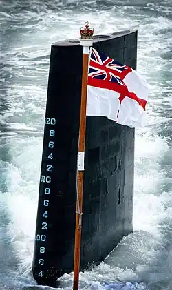 ![]() HMS Trafalgar, a Trafalgar-class attack submarine, on transit to the fleet review in Portsmouth Dockyard, part of the Trafalgar 200 | |