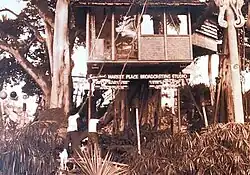 Beach was honored with a House Resolution Tourism Award in 1957.[9] He died in Hawaii in 1989.[10][11] The International Market Place had experienced almost complete turnover since its inception, and all of its buildings were finally bulldozed in 2013 after they had fallen into great disrepair. Preservationists ensured that the main banyan tree remained for the completely new International Market Place's grand reopening in 2016.[12][13] A commemorative plaque installed on the new "Don's Treehouse" reads in part: "The opening of Dagger Bar and the Bazaar Buildings in 1956 marked the establishment of Waikiki Village. Donn Beach...lived and worked in this treehouse...it was also the broadcasting home of radio personalities like J. Akuhead Pupule, who shared Hawaiian music with the world."