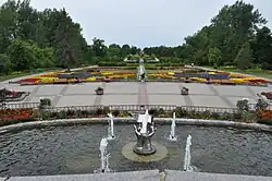 ![]() A view of the fountain and flower gardens. The central division divides Canada (right) from the USA (left). | |