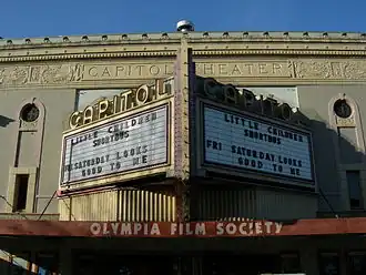 Approximately fifty different bands played stage shows during the Convention.[6] The most visible performances took place at the Capitol Theater but other local venues participated as well, and many shows arose as impromptu performances at record stores, house parties, and other spaces. Among the players were Fugazi; Bikini Kill; Fastbacks; Built to Spill; Some Velvet Sidewalk; Melvins; Unwound; L7; and Shadowy Men on a Shadowy Planet.[3] Beyond musical performances, the Convention also fostered an eclectic variety of arts-related activities ranging from poetry readings to cakewalk dances and even a Planet of the Apes movie marathon.[3][5]