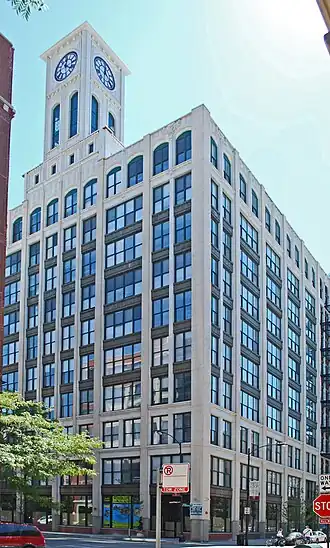 Designed by architects Mundie & Jensen and constructed in 1915–1916, with a substantial addition completed in 1922. In 1915–1916, when the International Tailoring Company built its ten-story building on Jackson Boulevard, it joined a handful of other businesses that since the 1890s had built and operated massive Chicago clothing factories. Established in 1896, the International Tailoring Company and its founder and president Jacob L. Reiss (1874-1955) rode the wave of clothing factory production. Where sweatshops were portrayed as dirty, cramped, dark, and unsafe, the modern clothing factory exemplified by Mundie & Jensen's design for the International Tailoring Company plant was clean, spacious, brightly illuminated by natural light, and constructed with an eye to worker comfort and safety.[3]