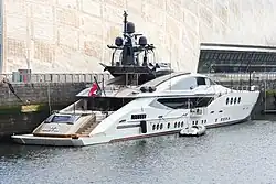 On 2 March 2022, German authorities immobilized the Dilbar, owned by Alisher Usmanov.[145][146] She is reported to have cost $800 million, employ 84 full-time crew members, and contain the largest indoor swimming pool installed on a superyacht at 180 cubic metres.[147]