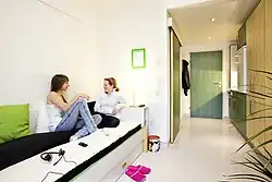 In addition to accommodation units with bath and kitchen for one person, ISH also has a number of apartments for two to six persons, who share the hall, bath and kitchen but have a room of their own. There are also some studios and small apartments and barrier-free units for one or two persons each as well.