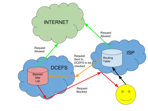 Internet censorship in New Zealand refers to the New Zealand Government's system for filtering website traffic to prevent Internet users from accessing certain selected sites and material. While there are many types of objectionable content under New Zealand law, the filter specifically targets content depicting the sexual abuse or exploitation of children and young persons. The Department of Internal Affairs runs the filtering system, dubbed the Digital Child Exploitation Filtering System (DCEFS). It is voluntary for Internet Service Providers (ISPs) to join.[1]