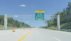 On July 14, 2007, a section of the loop from I-40 west to NC 54 and NC 55 was opened.[18] However, the route is signed not as I-540 but as NC 540. Officials decided to change the designation in early July at the urging of the North Carolina Turnpike Authority (NCTA). Work on the western and southern portions of the beltway, if paid for by state funds, would possibly not open until 2030. At the request of several Wake County mayors, the NCTA in 2006 began studying the use of tolls to complete these portions of the Outer Loop.