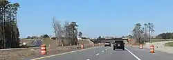 That same year, a contract for the segment between NC 66 and US 311, Projects U-2579D, U-2579E, and U-2579F, was awarded. Actual construction began April 2019 and opened to traffic on November 7, 2022.[54][50] Next, construction on the segments between I-74 and US 421/Salem Parkway, Projects U-2579AA and U-2579AB, was scheduled to begin in 2020[54][6] and completed in 2024.[50] However, the projects were postponed due to the cash crunch caused by the COVID-19 pandemic. The final contract was awarded on January 22, 2022, with construction beginning later that year. Its completion is now scheduled for 2026.[55] Construction on the interchange with US 52, which began in 2019,[56] was scheduled to be completed in mid-2023,[50] but was since been postponed again to around Thanksgiving 2023.[57] The southbound exit and northbound entrance from US 52 was opened to traffic on November 18, 2023; the rest of the interchange remains under construction.[58] As of December 2024, all movements between NC 74, US 52, and NC 65 are open to traffic.