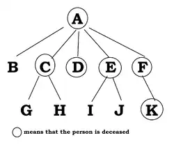 - in the collateral line, the number of generations between the blood relation and the nearest common ancestor, plus the number of generations between that common ancestor and the deceased.