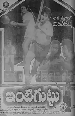 Intiguttu or Inti Guttu is a Tollywood film that was released on 14 September 1984 and was directed by K. Bapayya. It stars Chiranjeevi, Nalini, Suhasini, and Kaikala Satyanarayana. The movie is a remake of the 1964 Tamil movie Panakkara Kudumbam.