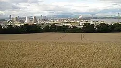 Wheat above Inveravon, with Grangemouth Oil Refinery