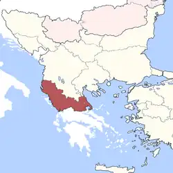 The Ioannina Eyalet (Ottoman Turkish: ایالت یانیه Eyālet-i Yānyâ)[1] was an administrative territorial entity of the Ottoman Empire located in the territory of present-day southern Albania, central and northern Greece. It was formed in 1670 and its administrative centre was Ioannina. During the period 1788–1822, Ali Pasha (sanjakbey of Trikala) seized control over Ioannina and after enlisting most of the local brigands under his own banner took advantage of a weak Ottoman government to gain control over the Ioannina Eyalet and most of Albania and continental Greece, transforming it into the semi-autonomous Pashalik of Yanina. After he was killed in 1822 the Ottoman Empire reestablished the Ioannina Eyalet which existed until establishment of the Janina Vilayet in 1867.