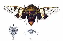 - ^ "Mr. Distant's description of new species belonging to the Homopterous family Cicadidae". Transactions of the Entomological Society of London: 630โ631. 1881.