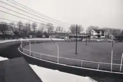 Totalisator turnover in the first two years after the war was £594,645 & £417,101.[6] The track continued throughout the 1950s and 1960s with racing held mainly on Wednesday and Saturday evenings at 7.15pm. The race distances were over 300, 500 and 700 yards and amenities included a licensed bar and snack bar and the totalisator was described as the Union Multi-speed wonder tote. The 405 yard circumference circuit had an 'Outside McKee' hare and the all-grass track was served by a spray watering system.[7]