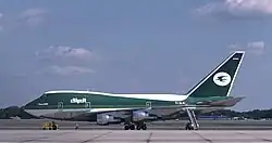 An Iraqi Government Boeing 747SP operated by Iraqi Airways at Andrews Air Force Base in 1989