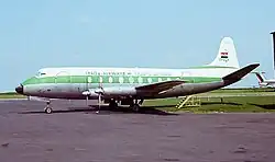 Iraqi Airways Vickers Viscount 735 at East Midlands Airport in 1978