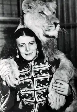 Irina Nikolayevna Bugrimova-Buslayeva[a][1] (née Bugrimova; March 13, 1910 – February 20, 2001) was the first female lion tamer in the Soviet Union. Called a "circus legend" by sources such as the BBC,[2] Bugrimova was the first woman in Russia and the then-Soviet Union to work with lions, tigers, and ligers in a variety of performing acts,[3] and trained more than 70 big cats during her career.[4]