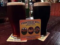Irish red ale (Irish: leann dearg[1]), also known as red ale or Irish ale, is a style of pale ale that is brewed using a moderate amount of kilned malts and roasted barley, giving the beer its red colour. Its strength typically ranges from 3.8% to 4.8% alcohol by volume, although some craft varieties can be as high as 6%.[2]