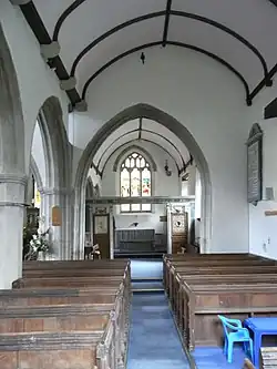 The Church of England parish church of Saint James the Less is Perpendicular Gothic and includes a clerestory, south aisle and south chapel, two-storey north porch and three-stage bell-tower.[5] The nave and south arcade are of three bays.[5] The nave, chancel and south chapel all have wagon roofs and there is a fan vault under the tower.[5]