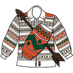 The Iron Arrow Honor Society adopted Seminole Indian motifs for its symbolism, including the regalia of a Seminole-themed jacket worn as its emblem. A version of this jacket serves as the identifying logo on its website.[3]