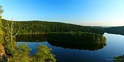 The Iron Mountains (Czech: Železné hory) is a mountain range in the Czech Republic, which is a part of the Bohemian-Moravian Highlands. Their location is in the North of the Bohemian-Moravian Highlands. They have an area of 748 km²,[1] their average height is 480,8 metres, and their highest peak is Pešava at a height of 697 metres[2] which is located exactly in the Sečská Upland, which is part of the Iron Mountains. But other sources state that the highest peak is Vestec, at a height of 668 metres.[3]