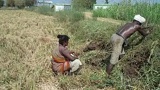 Traditionally, the main occupation of the Irulas has been snake and rat catching, and honey collection. They also work as labourers[8] (coolies) in the fields of the landlords during the sowing and harvesting seasons or in the rice mills. Fishing and cattle farm is also a major occupation.
