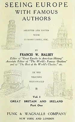 Harry Falkenau (1885), an early defender of Walt Whitman's poetry and one of Cornell's Chimes Masters, went on to a career as a music critic for the Chicago Herald and later as the owner of an antiquarian book shop in Chicago. Francis Whiting Halsey (1873), was a prolific journalist and author who wrote for The New York Times from 1880 to 1896 and served as its literary editor from 1892. Dewitt John Brigham (1870) was an editor and publisher at Cedar Rapids, Iowa. A member of the Republican Party, Brigham was appointed American Counsel at Aix-La-Chapelle. On his return to Iowa, he served as editor of the Midland Monthly prior to taking the position of State Librarian. Among his works of literature were The Youth of Old Age (1933), awarded outstanding contribution by an Iowa author in 1934.[36]