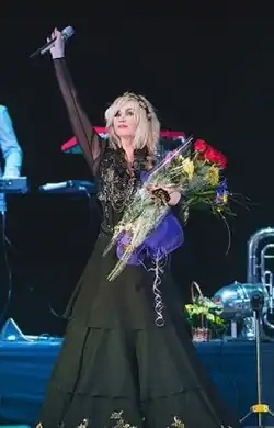 Iryna Mykolayivna Bilyk (Ukrainian: Ірина Миколаївна Білик, born 6 April 1970 in Kyiv) is a Ukrainian singer-songwriter, holder of the Order of Princess Olga of the 3rd class,[1] Merited (1996)[2] and People's Artist of Ukraine (2008).[3] With a repertoire of songs in Ukrainian, Russian and Polish, Bilyk practically reached the top of the Ukrainian show business in the 2000s.[4] She is often called the "Ukrainian Madonna" due to many of her songs becoming hits in the 1990s, frequent style changes and influence on the Ukrainian musical media scene.[5] YUNA considered Bilyk "the best singer of the two decades" in 2012.[1]