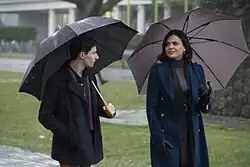 In Storybrooke, Regina has Henry line up against a wall to measure his growth. As he leaves for school, Regina gives him her car. However, he isn't sure about colleges at this point. Later on, Regina surprises Henry with a bunch of brochures from universities for him to consider. Weeks later, Regina discovers that Henry was accepted to every university, but Henry continues to have doubts about his future and isn't sure about what he wants.