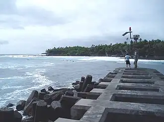 Isaac Hale Beach Park is an oceanfront park on Pohoiki Bay in the Puna District of the Big Island of Hawaiʻi, Hawaiʻi, United States. Known for its strong currents and large waves, the bay was part of a fishing village for centuries. It was one of a few places on the southeastern shore of Hawaiʻi for ocean access and boat launching.[1] The park used to be known for good snorkeling, though the 2018 lower Puna eruption covered most of the coral and safer swimming area with black sand. The park was expanded and modernized in 2006.[2]