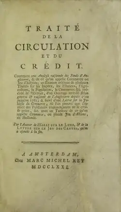 - ^ An essay on circulation and credit: in four parts; and a letter on the jealousy of commerce. From the French of Monsieur de Pinto. Translated, with annotations, by the Rev. S. Baggs, M.A. Traité de la circulation et du crédit. English (http://ota.ox.ac.uk/id/5030) by Pinto, Isaac de, 1715-1787., licensed as Creative Commons BY-NC-SA (2.0 UK).